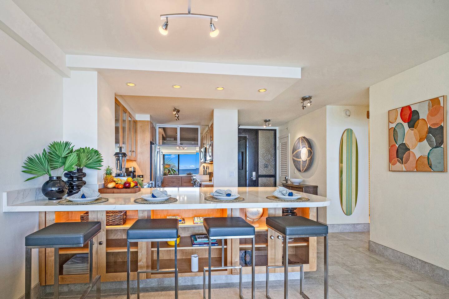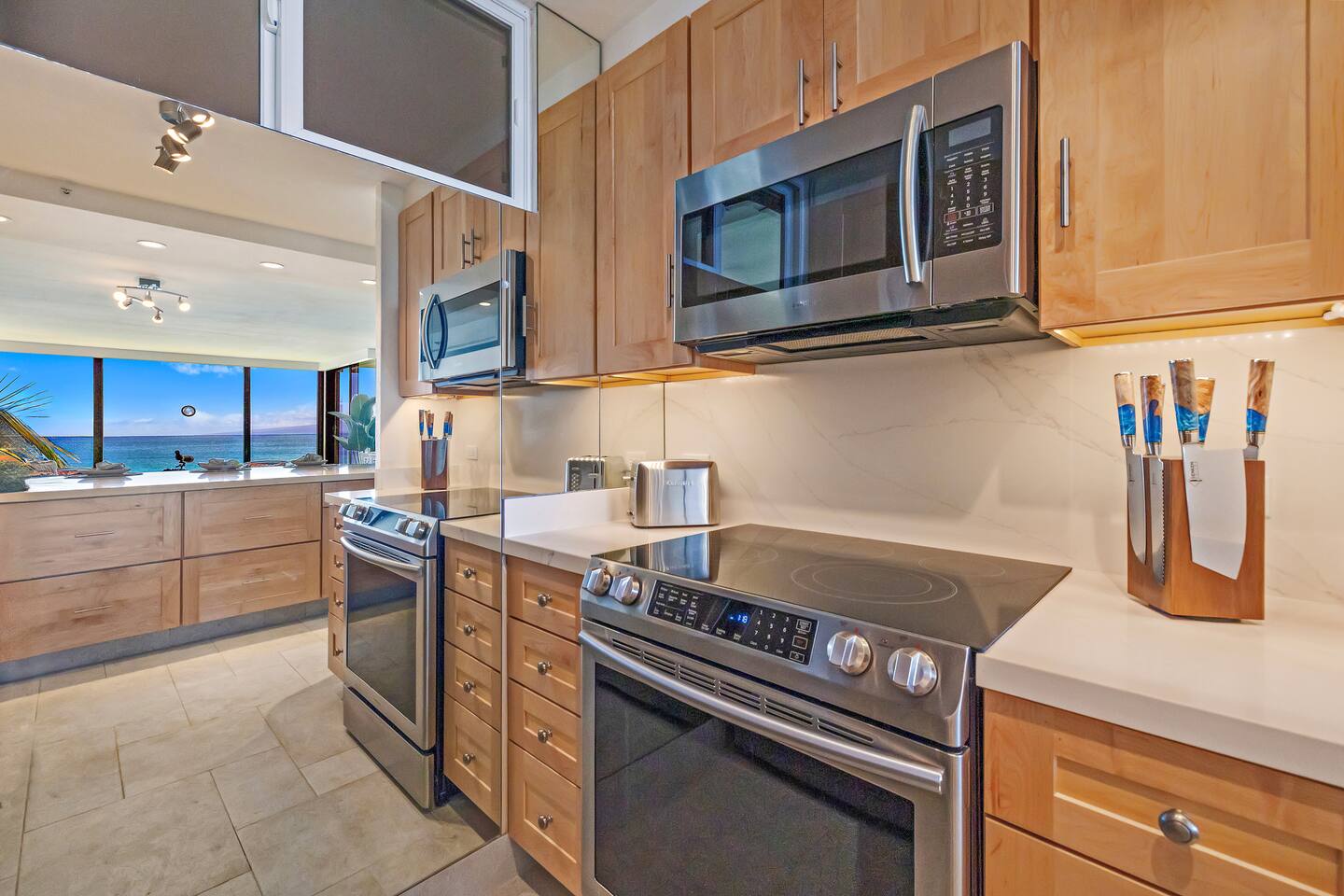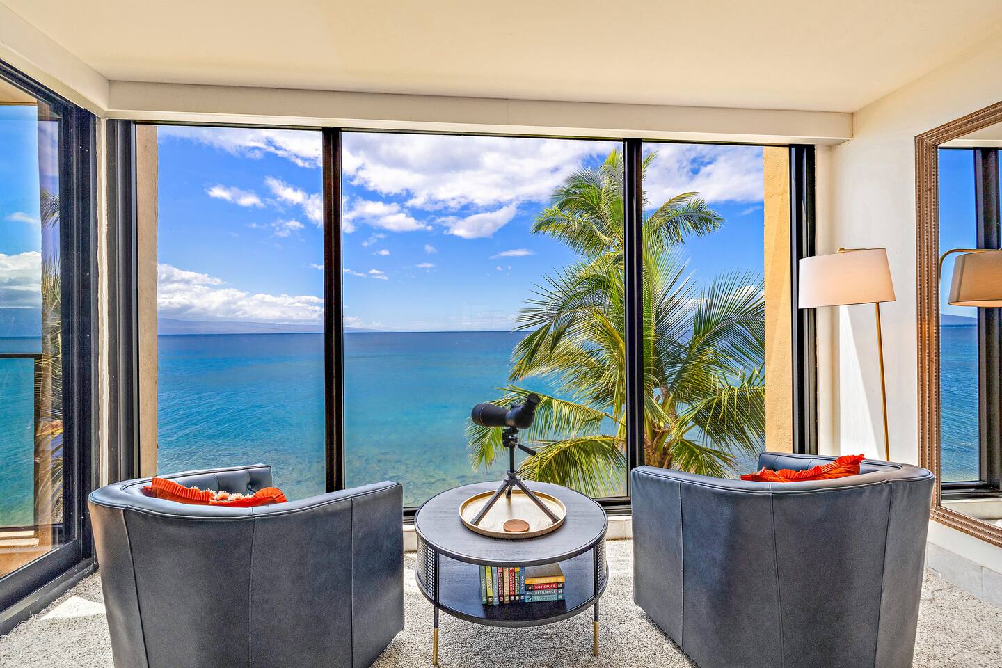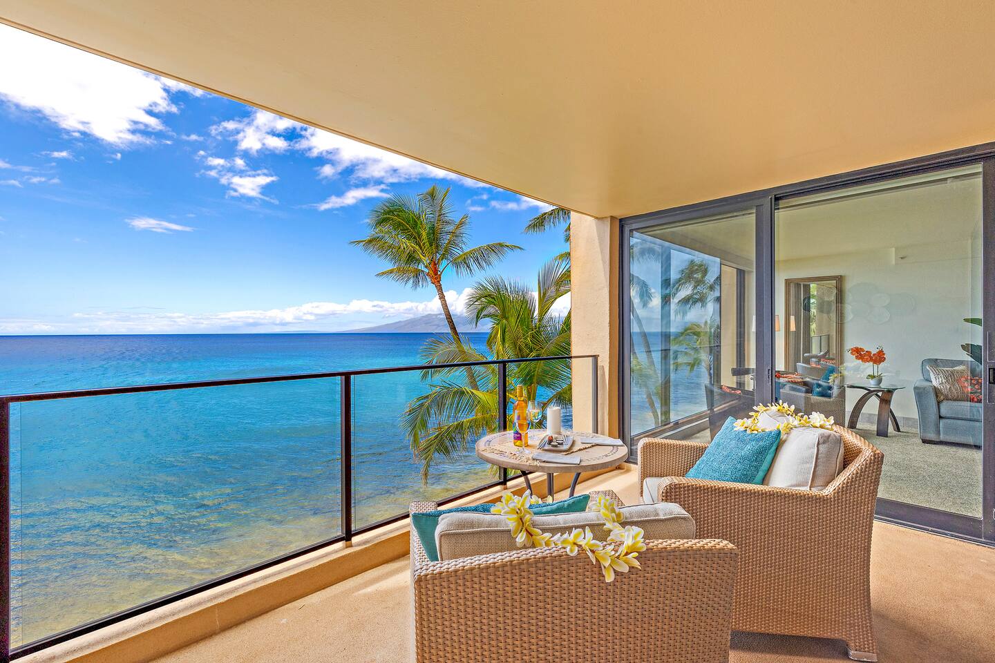 🌺Relax and Indulge: A stunningly renovated oceanfront 1-bedroom, 1-bath condo designed for discerning guests seeking high-end accommodations with the best views in Maui. With exquisite luxury appointments and breathtaking views, this unit is the best equipped unit in the Mahana and is your gateway to an unforgettable Maui experience. 🌺Family-Owned Excellence: This condo is proudly family-owned and managed, allowing us to deliver a personalized touch that sets us apart from the big companies. We take pride in providing an exceptional experience, providing high end quality furnishings and accessories, ensuring that every detail of your stay is thoughtfully curated for your comfort and enjoyment. We have a beach cooler, beach chairs, pickleball paddles, a boogie board, and snorkle gear. 🌺Property Highlights: - Prime Location: Situated on the pristine Kahekili Beach, just steps away from the famous Blackrock, enjoy world-class snorkeling and scuba diving on the vibrant reef right outside your door. Tennis and pickleball courts on property. - True Oceanfront: Gaze at swimming turtles below the lanai or whale watch right from the comfort of the living room. Mahana is 30 feet from the water and offers the best views in Maui! - Exclusivity & Serenity: Experience the tranquility of a low-density condo, ensuring you won’t have to fight for loungers or share the beach with large crowds. Revel in the peaceful ambiance that sets Mahana apart from larger resorts. - Uncrowded Beach Access: Immerse yourself in the beauty of a secluded beach, where you can relax and unwind away from the hustle and bustle of big hotels. - Culinary Delights: Savor delectable beachfront dining options just a short walk away, allowing you to indulge in the local flavors without the hassle of transportation. Amazing food truck park within walking distance for those days when casual fare is preferred. Close to favorites such as Monkeypod, Marrimens, Dukes, Mala Ocean Tavern, and more. - Comfort & Convenience: Stay cool and comfortable year-round with central air conditioning in the unit, ensuring a refreshing retreat after a day in the sun. - Shaded Parking: Your vehicle will be sheltered under the gorgeous, mature monkey pod trees in our shaded parking lot, providing a pleasant arrival and departure experience. No more looking for parking, there are alway opens spots available. - Resort-Style Pool: Take a dip in the beautiful tiled pool, complete with elegant teak furniture, perfect for soaking up the sun or enjoying a leisurely afternoon with friends. - Immaculate Grilling Facilities: Fire up the high-end grills, meticulously cleaned daily to ensure a pristine cooking experience for your outdoor dining needs. - Sleeping: Accommodations to sleep 4 with the king size bed and the queen pull out sofa sleeper. Provided is high thread count bedding for an amazing night's sleep. - Chef's Kitchen: For nights when a quiet romantic evening is in store, the well appointed kitchen boasts quality cooking equipment, including Damascus steel knives with a butcher block cutting board, a drip coffee machine, Nespresso machine for latte lovers, and a high powered Vitamix blender for amazing homemade piña coladas! Unit 418 Mahana is your luxurious home away from home in Maui, where every detail has been curated for an exceptional stay. Don't miss your chance to experience the best of island living in this exquisite oceanfront retreat. Come see why we fell in love with Maui and the Mahana Resort. Book your stay today and create lasting memories in paradise! Add my listing to your wishlist by clicking the ❤ in the upper-right corner